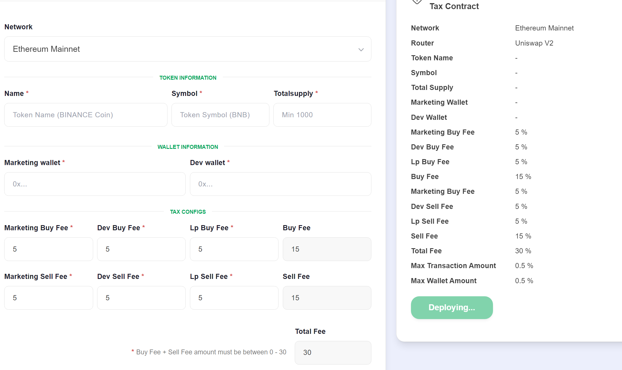 Thirdweb 沒能實現買入/賣出交易稅功能,于是我搜尋了一番,發現了確實有可以設置買入/賣出交易稅的一鍵發 Token 工具,太智能了...