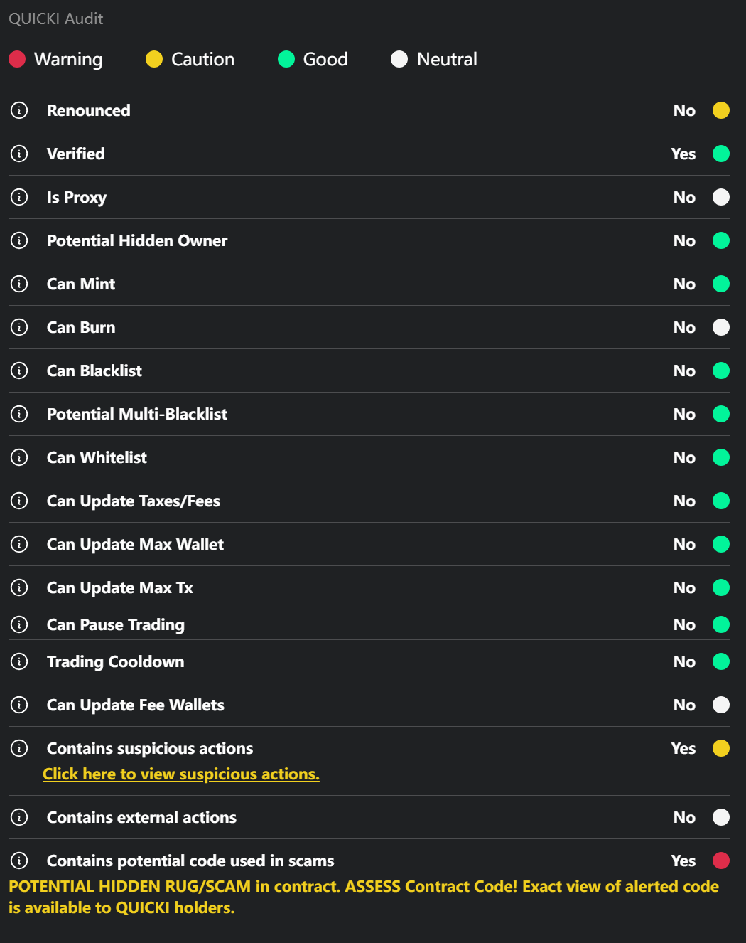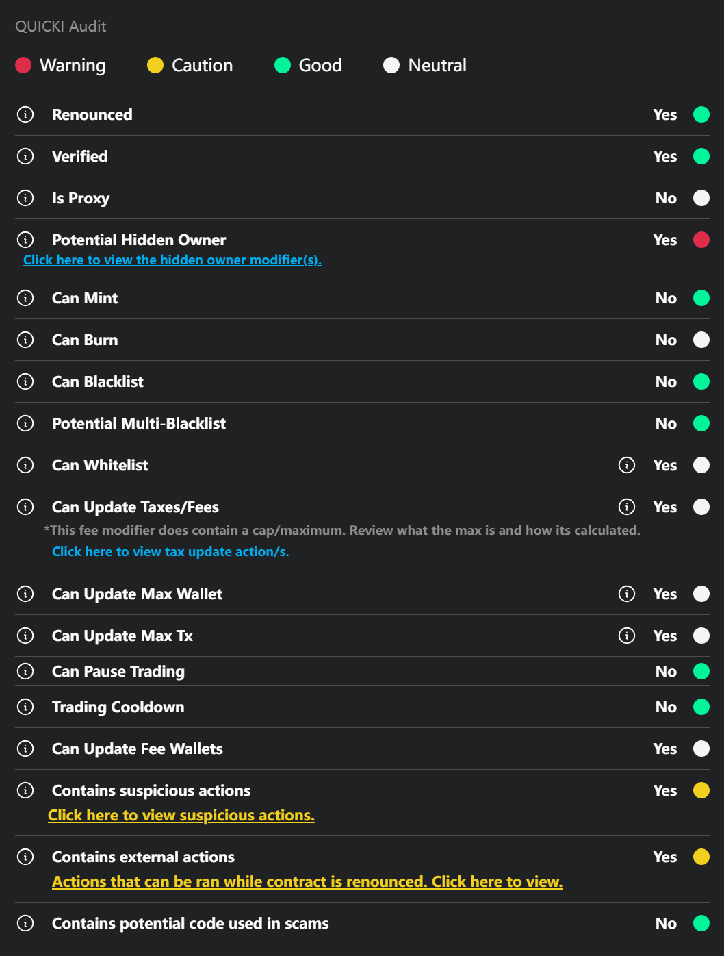 用 Quick Intel 檢測一下 $BALD 的合約,情況會好很多:
