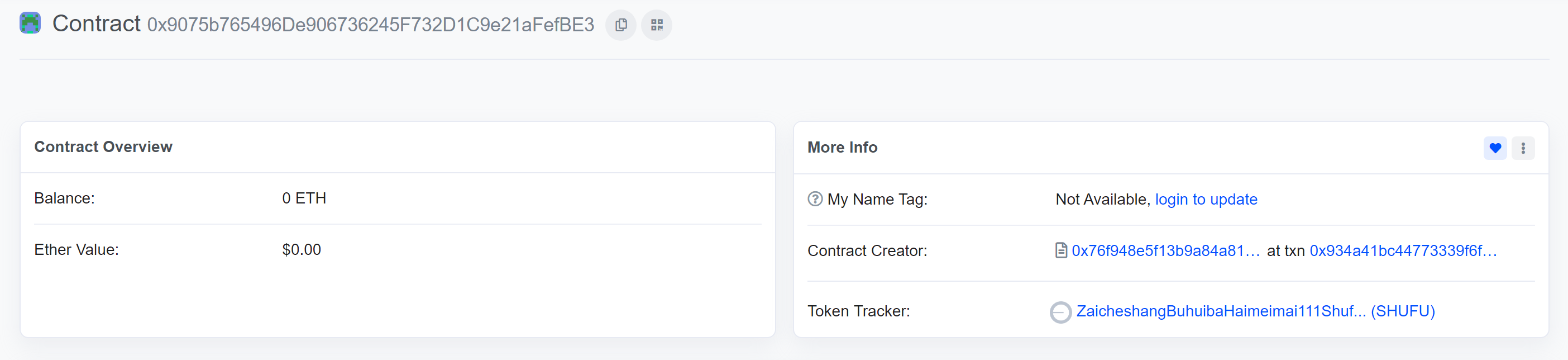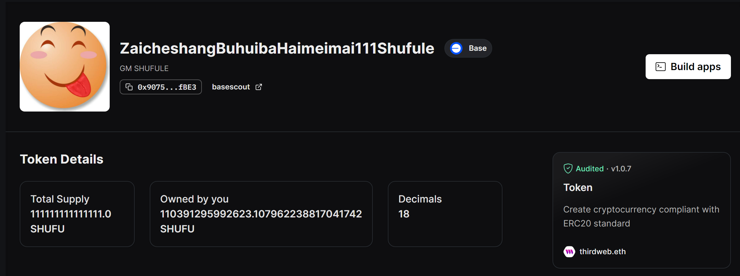 我設置的「Name」是「ZaicheshangBuhuibaHaimeimai111Shufule」,「Sybmol」是 SHUFU,「Description」是「GM SHUFULE」,「Image」則是一個舒服了的貼吧表情包。花費 2.26 美元成功部署后,效果如下: