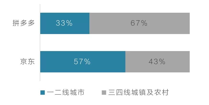 在地域擴張方面,京東就輸得極為憋氣了。因為擊敗巨頭京東的是一家被互聯網主流勢力無視的后起之秀拼多多,其手段簡單粗暴——走低端產品路線。這種策略雖在追求高檔生活的大中型城市不被買賬,卻頗受中小城市的歡迎,短短三年,竟聚攏了數以億計的用戶。